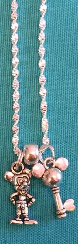 Disney Bound! This is made with all NEW materials. The chain is Sterling silver and the charms are plated. You may have your choice of length Sterling chain 16"-20". Matching keyring Rearview window Clipon available. Comes with satin gift bag in your choice of colors.