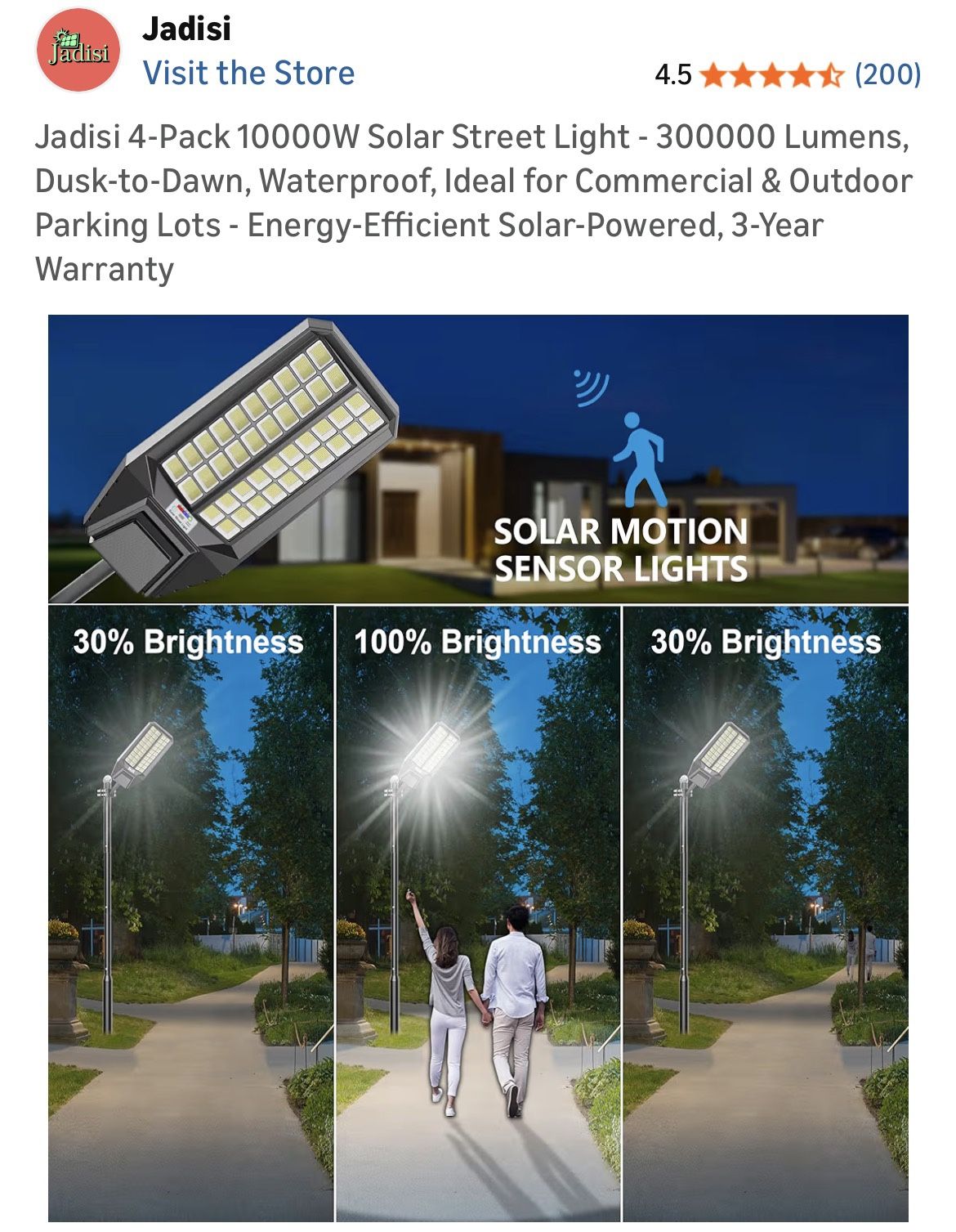 Solar Lights 4 Pack. Never used - Brand new still in box. Dusk to Dawn, Motion Sensor. Retail $460. Asking $250.