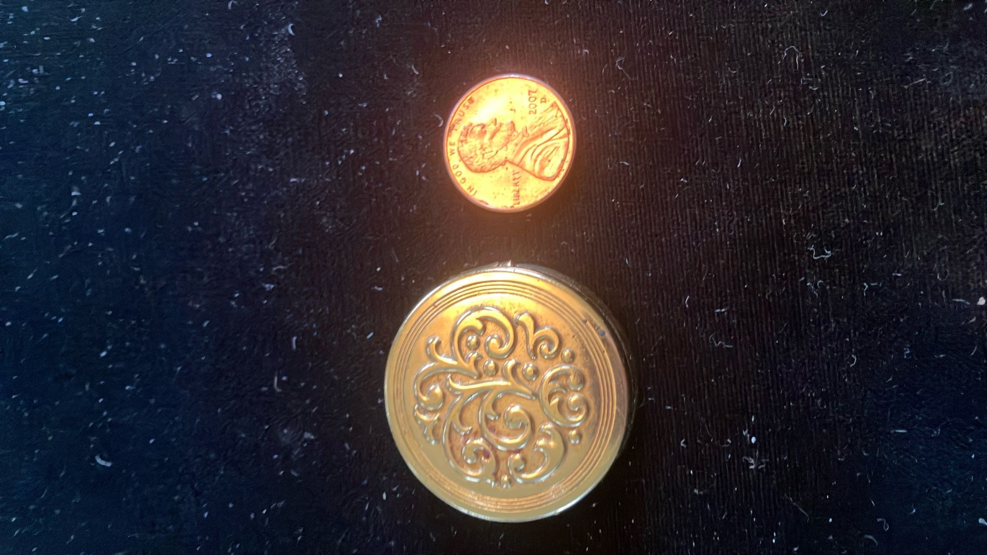 Never used. Still has the plastic cover over the lipstick. 1 1/4” diameter