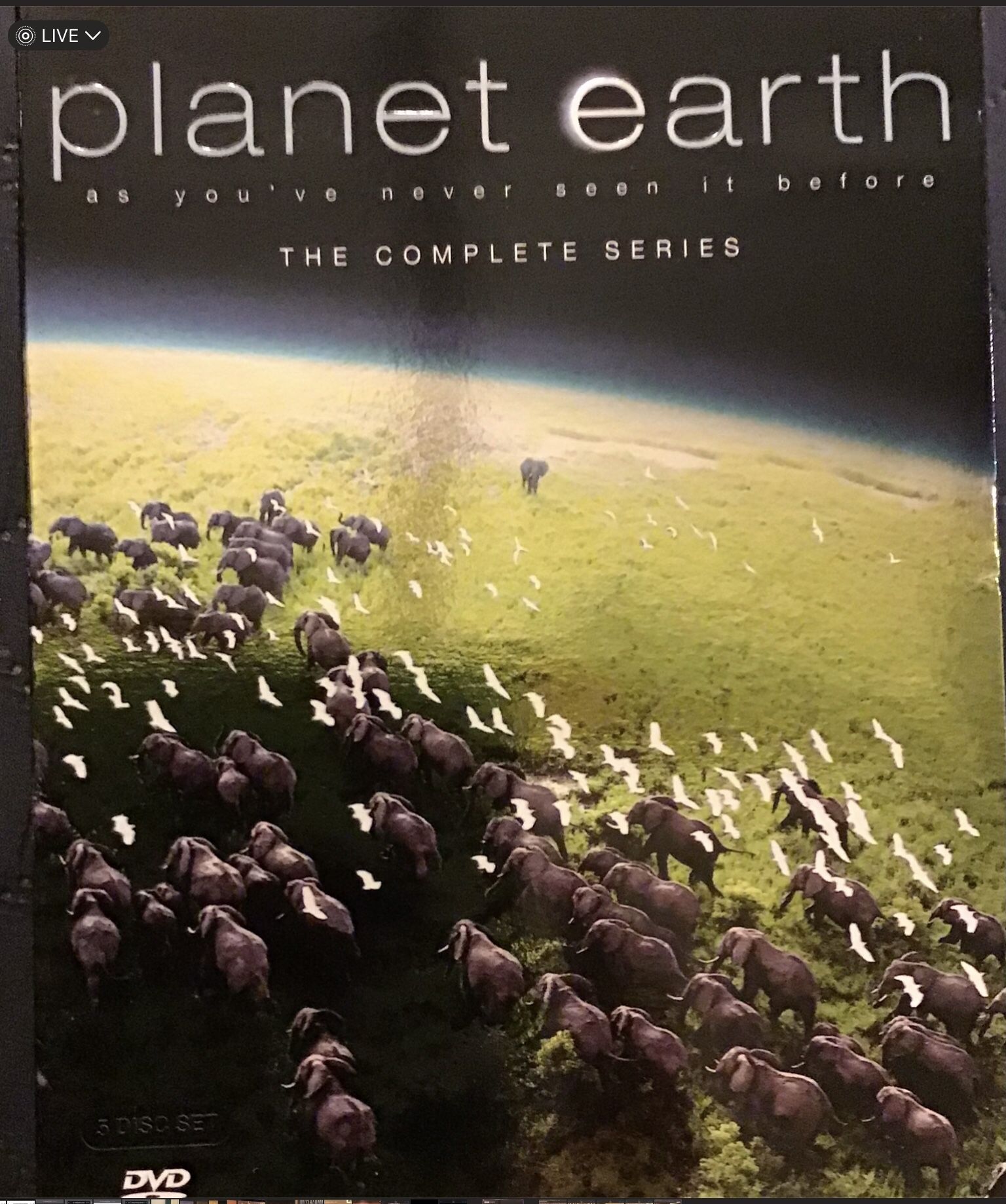 Like new only watched one time. Shows the beautiful and extraordinary planet we live on. A masterpiece. Be prepared to be overwhelmed. DVD’s (5) total.