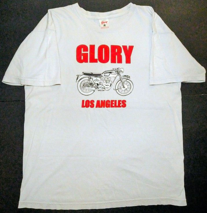GLORY LOS ANGELES SALES & SERVICE UTILITY BRAND VINTAGE CLASSIC MOTORCYCLE T+SHIRT!!! RARE! USA MADE! ποΈβπππ Background: THIS WAS BOUGHT BY ME DIRECTLY FROM GLORY SALES & SERVICE MOTORCYCLE CLOTHING STORE (RIP) LOCATED AT 4659 HOLLYWOOD BOULEVARD LOS ANGELES (HOLLYWOOD) CALIFORNIA AROUND 1997 MAKING THIS BEAUTY ALMOST 30 YEARS OLD NOW!!! STILL LOOKING GREAT INDEED!!! THE SAME GLORY CLOTHES STORE FAMOUSLY CAMEOD IN THE RUNAWAYS PUNK ROCK GROUP BIOGRAPHY MOVIE IN 2010 & WAS A STAPLE OF THE ECLECTIC HOLLYWOOD & VERMONT NEIGHBORHOOD NEXT TO MAYA, ZULU, WACKOO ETC. FOR MANY MANY YEARS!!! THE CLOTHING FROM THERE WHETHER IT BE T-SHIRTS, JEANS, HATS, ETC. ARE SOUGHT AFTER & HARD TO COME BY AS IS THIS SWEET VINTAGE CLASSIC EXAMPLE RIGHT HERE!!! ππ Condition: As is in PHENOMENAL wearable/displayable condition top top bottom inside & out!!! ABSOLUTELY NO HOLES, TEARS, RIPS, STAINS OR ANY OTHER DEFECTS WHATSOEVER!!! ππ§π±π Colors: LIGHT GRAY WITH BLACK & RED GLORY LOS ANGELES SALES & SERVICE SILKSCREENED FRONT & BACK TRIUMPH CAFE RACER ARTWORK/GRAPHICS/LOGO/LETTERING!!! π€π€β€οΈπ Sizing: ADULT UNISEX LARGE! (Chest - 20" Inches /Arms - 7" Inches / T Shirt Length (Top To Bottom) - 27" Inches (Measurements Approximate) ππ Fabric: 100% COTTON!!! πͺ‘πͺπ Featuring: THOSE KILLER SILKSCREENED GLORY SALES & SERVICE LOS ANGELES TRIUMPH CAFE RACER MOTORCYCLE ARTWORK ON THE FRONT WITH THE SWEET RED & BLACK GLORY LOS ANGELES LETTERING & SIMPLE MOTORCYCLE SHOP ADVERTISEMENT LOCATION AROUND THE CENTER NAUTICAL STAR ON THE SILKSCREENED BACK!!! PLUS PEEP THE UNLUCKY FRONT FENDER NAMEPLATE & NAUTICAL STAR OIL TANK ON THE MOTORCYCLE!!! SOOOOO SWEET!!! ποΈβπ¦Ύβ€οΈπ€ Manufacturer: GLORY SALES & SERVICE MADE IN BEAUTIFUL LOS ANGELES CALIFORNIA, USA!!! ππΊπΈπ FROM A SMOKE FREE/PET FREE HOME FYI!!! ππππβοΈ ππ¦πRARE IN THIS MINTY OVERALL CONDITION!!! DON'T MISS OUT!!!ππ¦π $70 USD + Shipping from Los Angeles, California, USA!!!π²π·οΈππ΄π I will ship anywhere in the world at the buyer's expense! π¦ππ₯° I accept Paypal, Venmo, CashApp, or Cash In Hand of course for payment! π€ βοΈ FCFS NO HOLDS / NO TRADES βοΈ More pictures/video available upon request! πΈπΉ π¨PLEASE CHECK OUT MY OTHER AWESOME TREASURES AVAILABLE FOR SALE IN MY OFFERUP MARKETPLACE PROFILE!π¨ π€WILL BUNDLE!!!π€ THANKS FOR LπKING! ποΈβπππ