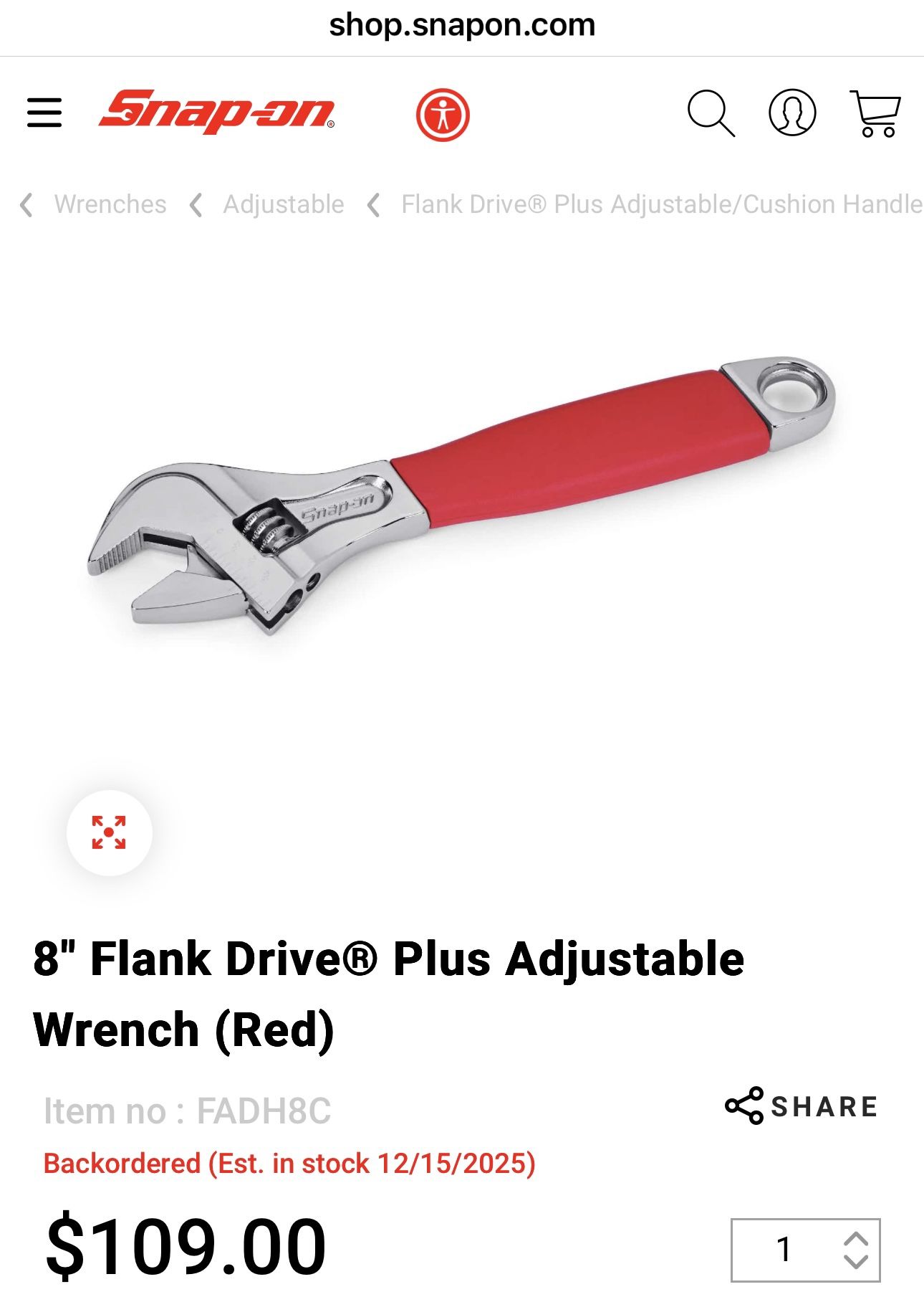 Snap-on Chrome 8 Inch Adjustable Wrench (Red)