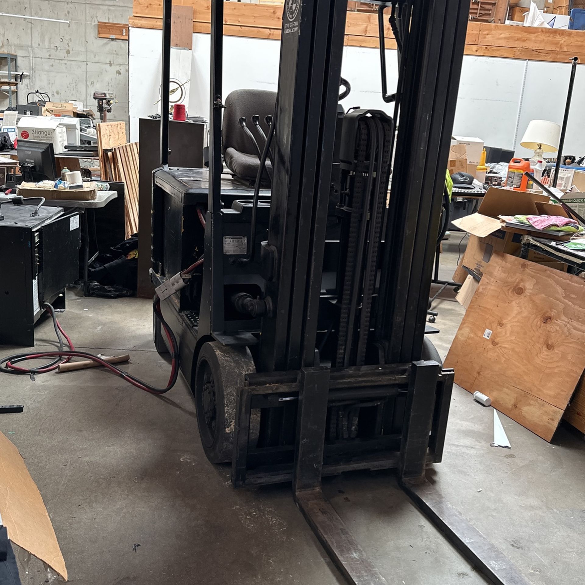 Mitsubishi Caterpillar Comes with charger Load capacity is 6000 Battery maintenance is up to date and everything holds charge Hydrolic pump is a bit weak however but still works as it should.