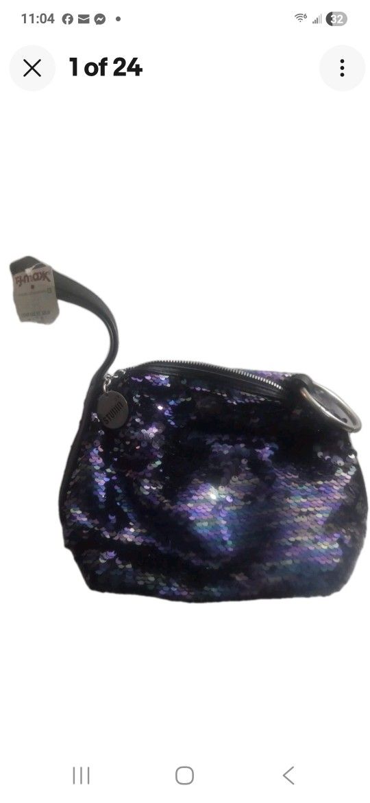 Studio 33 Bag Sequins Blue Clutch Navy Zip Belt Strap Cosmetic Travel New Tags