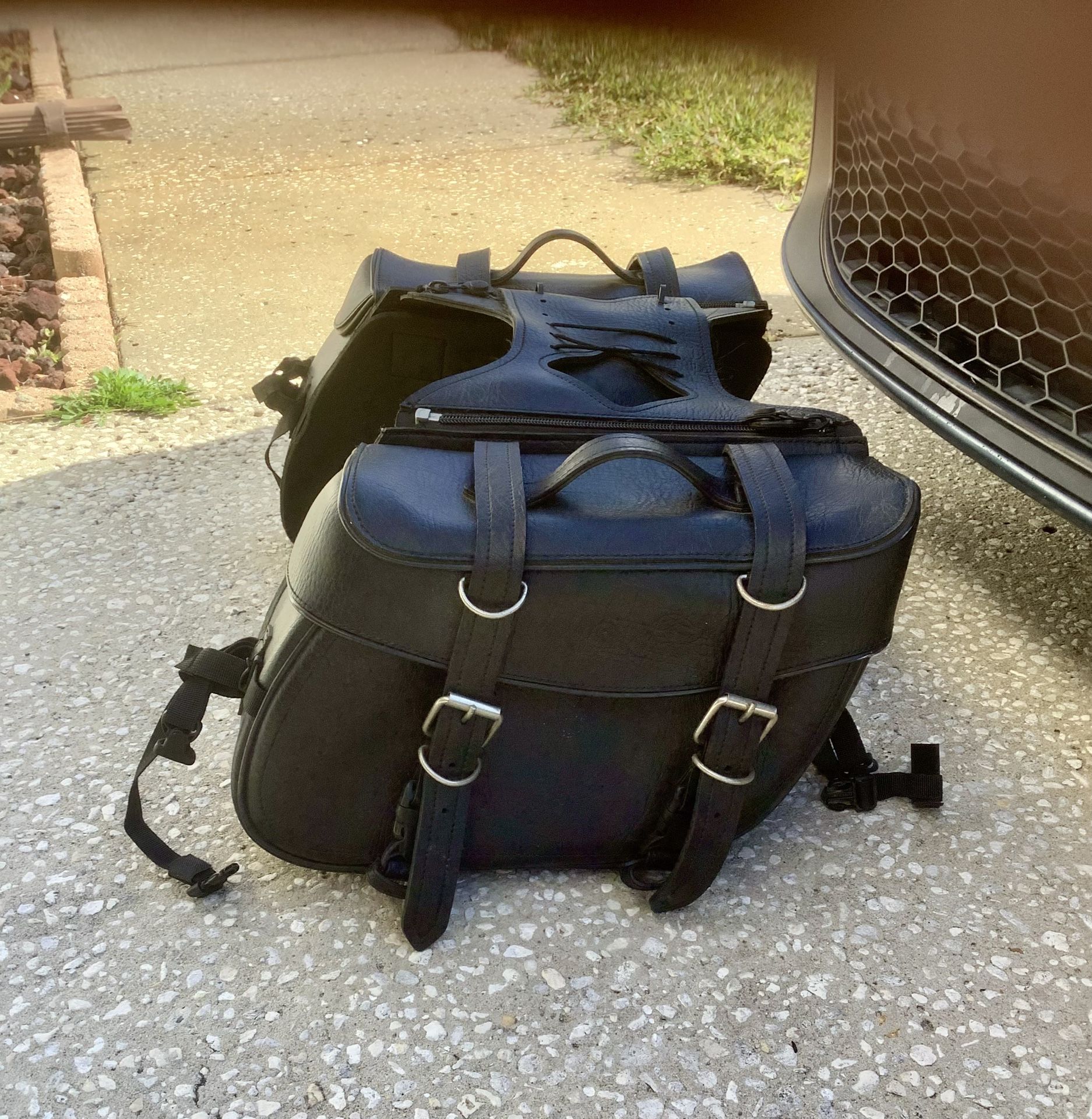 Leather motorcycle saddlebags. In good condition. Price $100.00