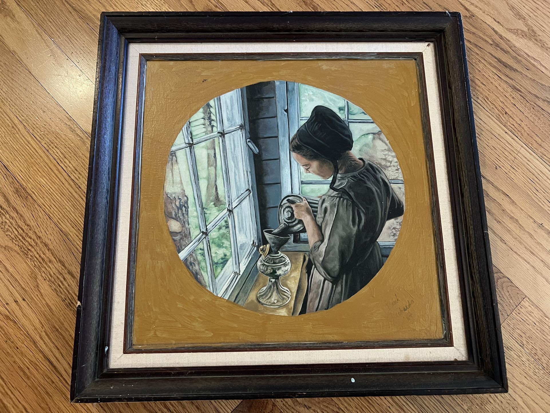 Vintage Dutch Girl Framed Painting 21” x 21”