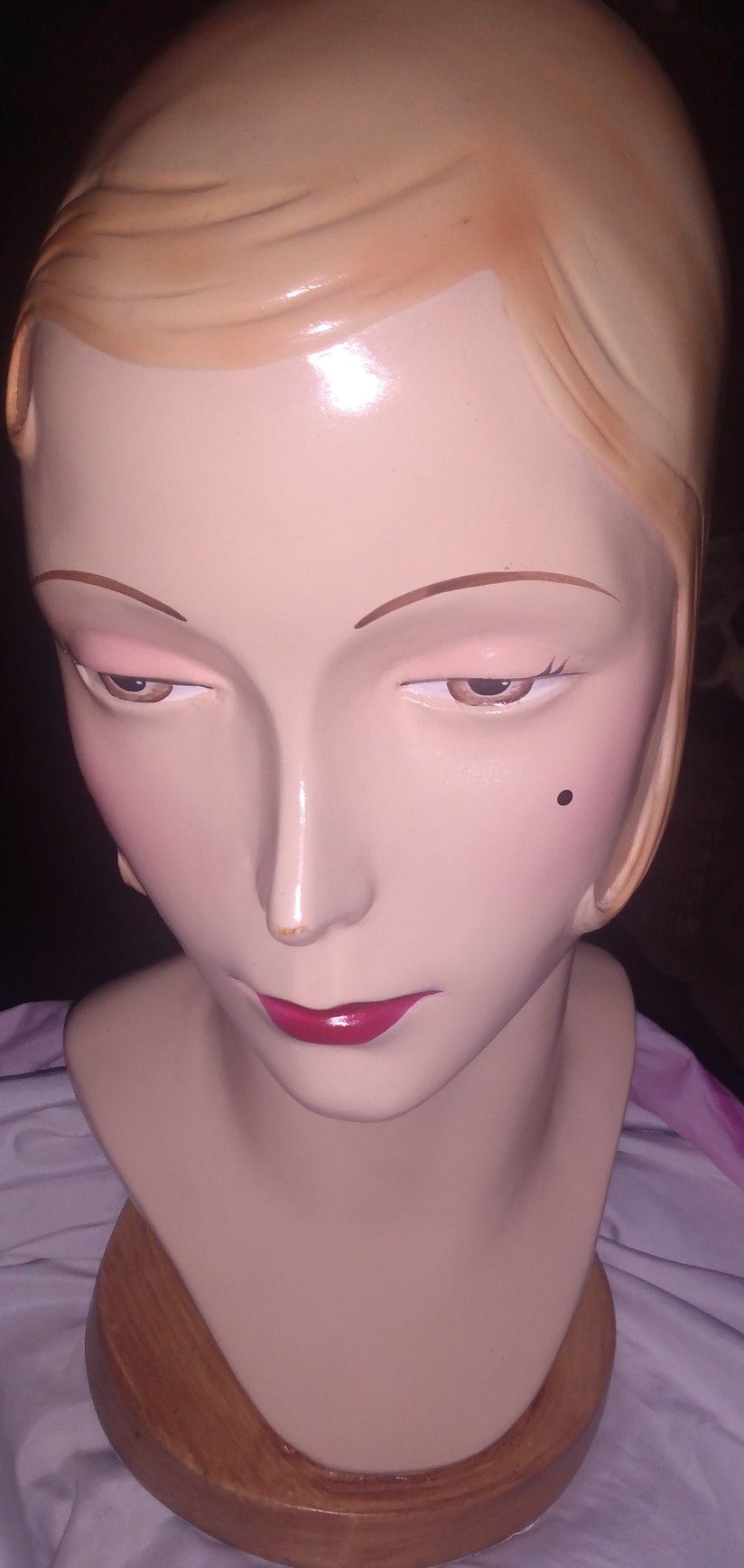 Vintage hand painted manequin head. 16" tall