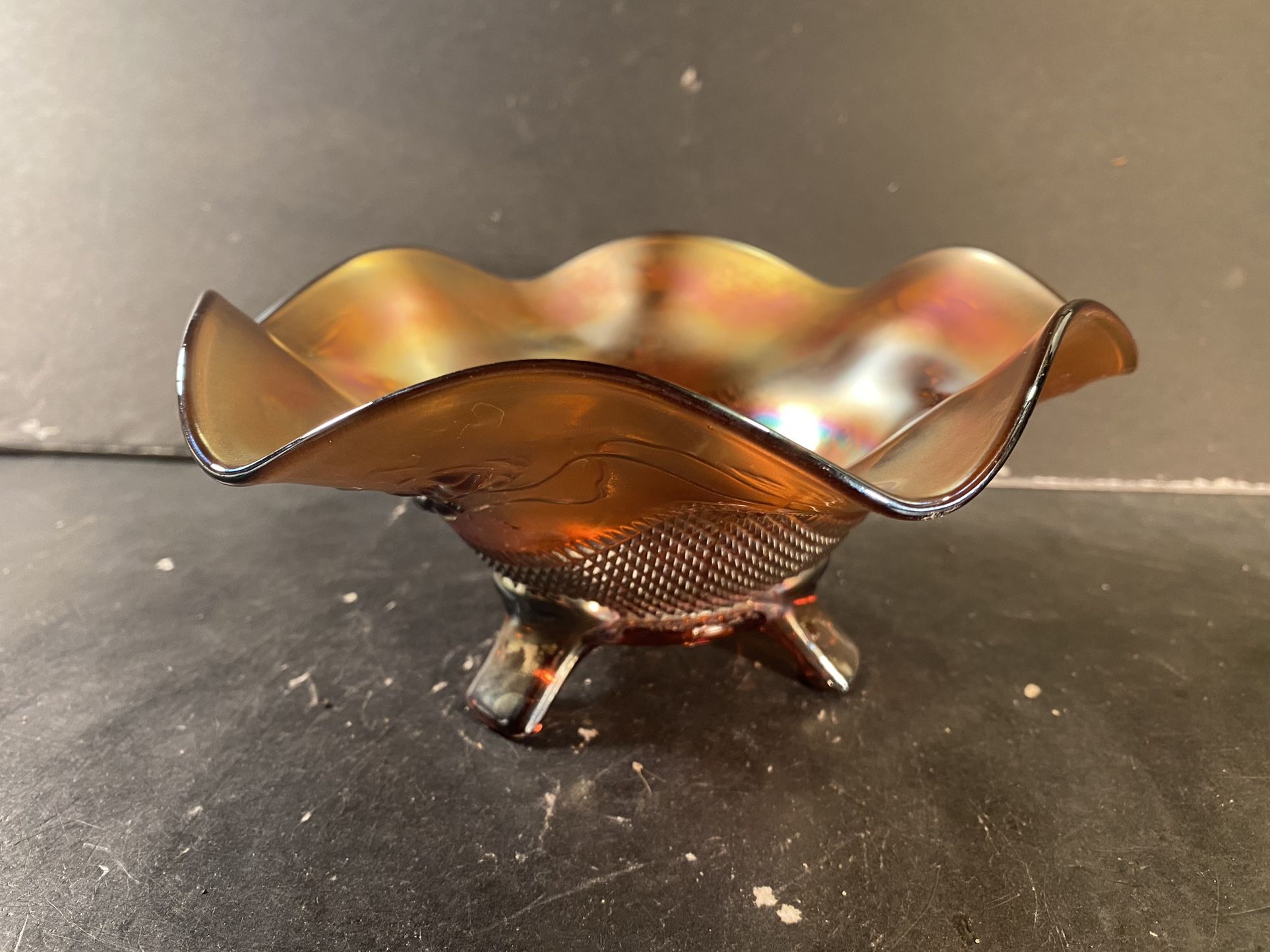 NORTHWOOD Antique Carnival Glass Fine-Cut&Roses Footed Candy Dish (Diameter: 7”)