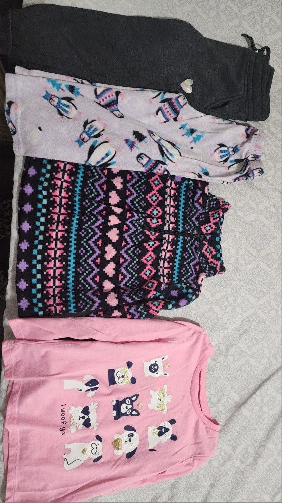This includes 2 fleecepants, 2 tops, one is fleeced and other one is regular. All gently used, grey pants are new without tag, no sign of any rip/damage. From Carters and CP. Text me if you have any questions prior to purchase.