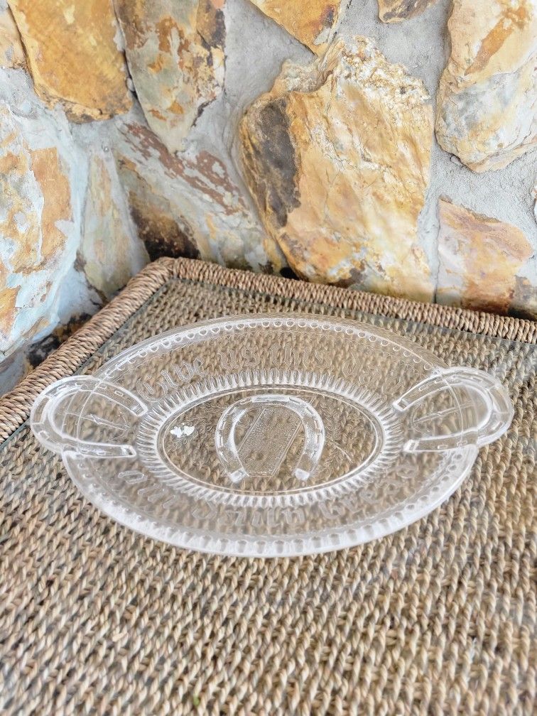 Vintage Adams & Co. Good Luck pattern clear glass oval bread tray. Discontinued. 9 x 13.25 inches $15.00 Scroll down ad and click on Seller Details for additional listings.
