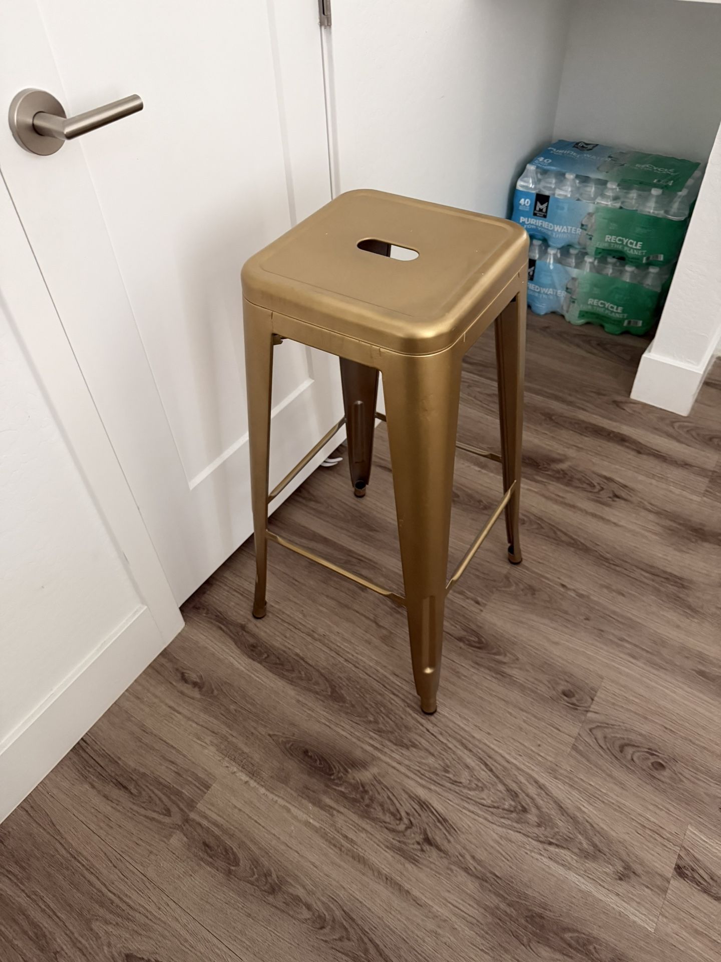 I have two 30 inch bar height gold bar stools. Normal wear and tear and will need a wipe down. $35 for a pair