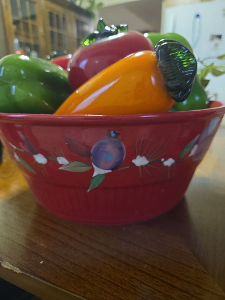 Medium to large glass bowl w actual size glass veggies.