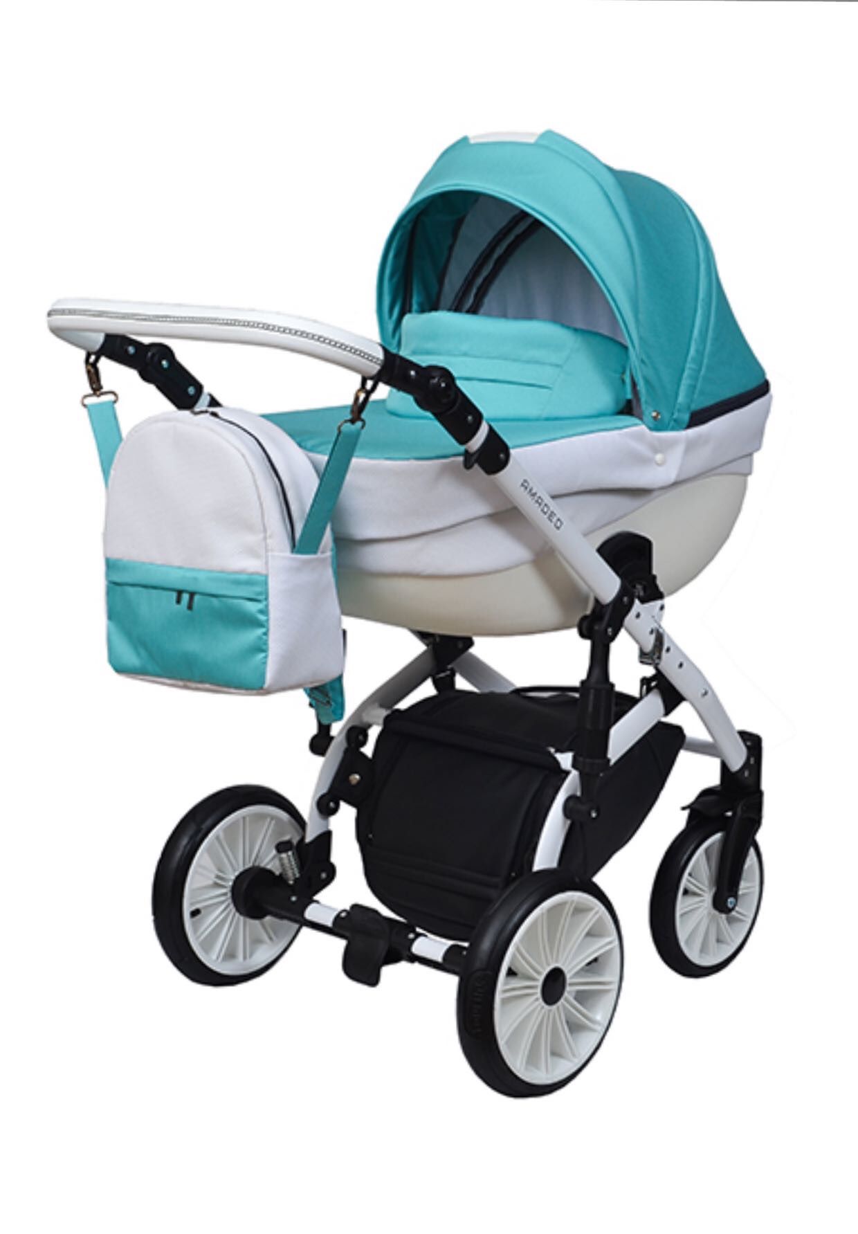 Universal multifunction baby stroller 2 in 1 "AMADEO" - a novelty of the summer of 2019. The new collection features dramatically new shapes and lines and increased comfort in use. The collection is made in trendy pastel fabric with eco leather elements, comes with wheels of new design and is presented in a large color range. Features of the stroller: Spacious plastic cradle, covered with eco leather; Updated and improved multifunctional walking block made of high-tech materials, backrest, adjustable footrest; Wheels of new design, front rotary with locking function; High quality eco leather handle is height adjustable; A spacious, closed shopping cart made of eco leather, fitted with a large opening; Extra lateral shock absorbers improve the ride of the stroller; The maximum ventilation mode of the winter booth; High-tech stock brakes; Convenient tilt adjustable cup holder, can be mounted on the inside and outside of the frame; A practical mom bag that easily transforms into a stylish backpack; The model can be further equipped with a car seat and winter gloves. Pipe: Spacious plastic cradle (41/89 cm) with adjustable headrest; The cradle is installed in 2 directions "to itself", "from itself"; Removable washable lining; Mattress with massage effect; Folding hood with large ventilation space; Leather handle; The exterior trim is made of eco leather; The interior of the cradle is made of natural cotton with insulation. Walking block: Plastic backrest, adjustable in 3 positions, including horizontal; Practical eco leather handle; Plastic footrest with regulation function; 5-point seat belt with advanced one-button locking technology; Additional orthopedic mattress contribution; Leg cover; Convenient advanced hood with bathyscaphe ventilation (elongation and shortening). Chassis: The newer frame design makes it more comfortable and maneuverable; Wheels on bearings of new design; Front swivel castors; Wheel diameter: rear 29 cm, front 23 cm; Double depreciation adjustable; High-tech stock brakes; Ergonomic leather handle with height adjustment in 5 positions; A spacious, closed eco leather shopping cart; Comfortable tilt cup; Chassis (60 cm) - included in any lift. Trolley equipment: frame; four wheels; pipe; a walking block; backpack bag for mom; raincoat; mosquito netting; a blanket on the legs in the walk block; bumper; a cradle with a mattress; cover and insulation contribution; a spacious closed eco leather shopping cart; bottle holder.