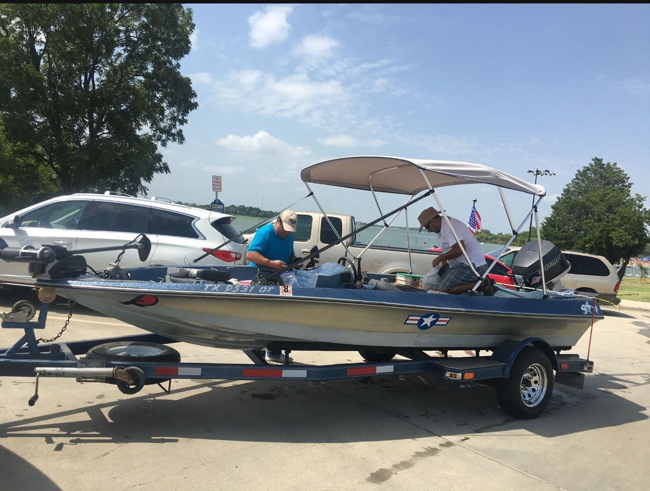 1985 Cheetah Boat 17: 6" with 115 hp Evinrude wint stainless steel prop titles boat and Motor Trollin Motor wireless Motor GuIde W75 24 or 12 volts 2 Remot wireless - 1 hand. Original titles for Boat and Motor Humminbird fish finder 597ciHD GPs 6 storage hutches Automatic Bilge pump LED lights 2 live well working Bimini top 2 extra pedestal fishing seats New rack steering system and cable