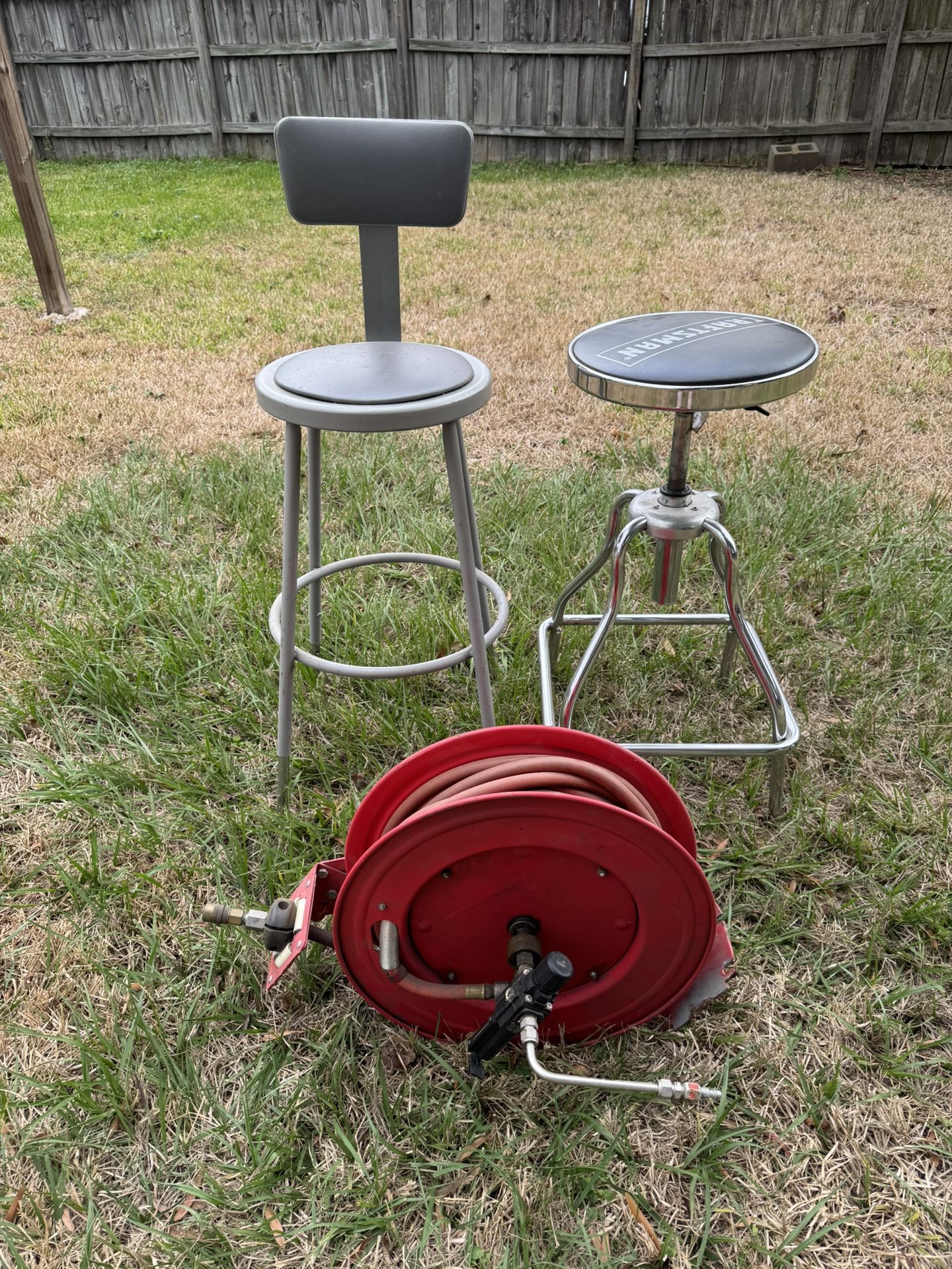 Shop Stools And Air hose Reel. Selling OBO.