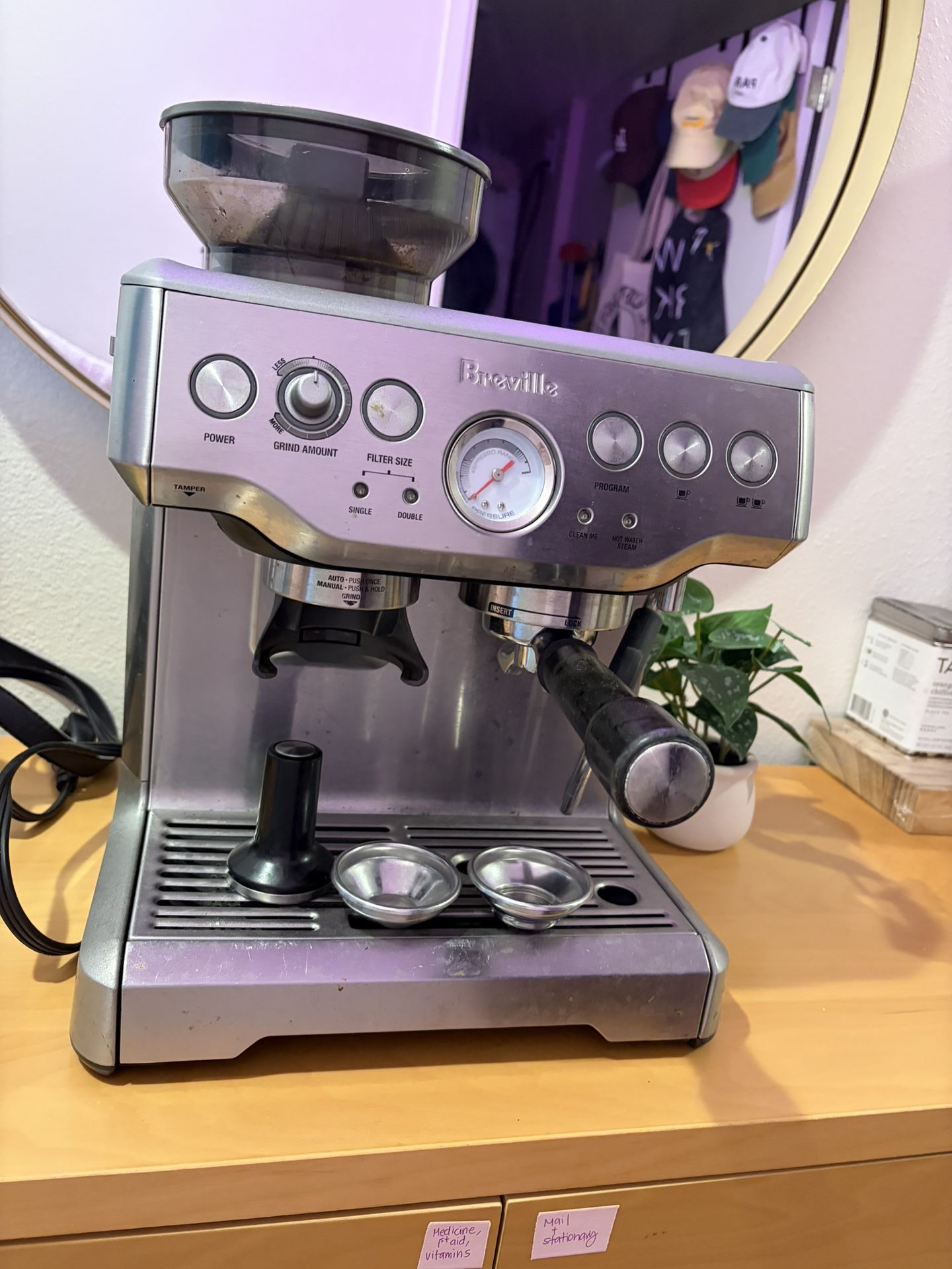 Breville Stainless Steel Barista Express Espresso Machine Light Silver BES870XL: 15 Bars Pressure, Milk Frother, Grinder