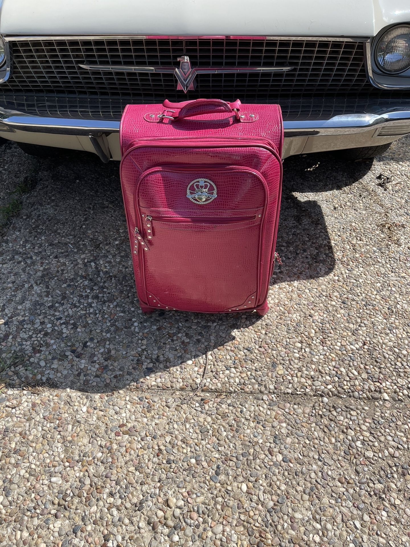 Kathy Van Zeeland 28 inch faux croc suitcase. In great shape no rips or tears. Minor scuffs from prior travels. Really cute fuchsia color with silver accents and a big middle logo crown. Tons of small zip inside storage as well. Must pick up in Fort Worth, 76112 area code.