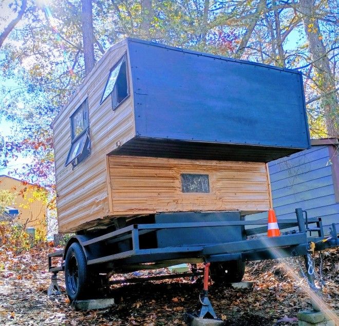 Nice Vintage slide in Camper with custom paint job.... including a heavy duty utility trailer with new tires ....68 inch ceiling ....3 built in cots 70 inches long.....Comes with AC Unit & Solar panel Hunting Cabin..Mini Camper... Mobile Shop... Portable Storage... Animal Trailer...All Day Events....Etc Great price 1,600 $$