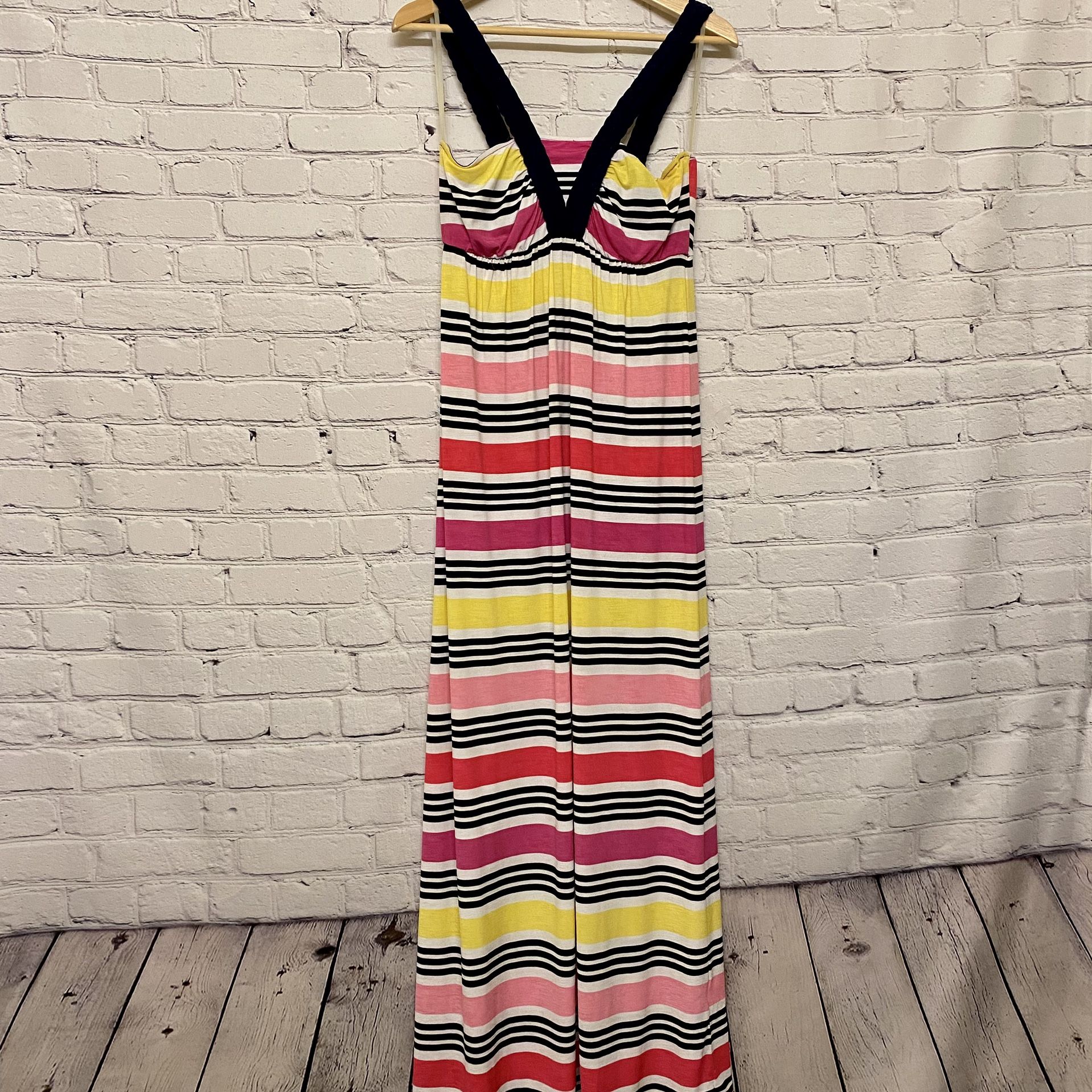 Silvergate Women’s Stripe Maxi Dress Woven straps Blue yellow pink white stripes Size Large Excellent condition