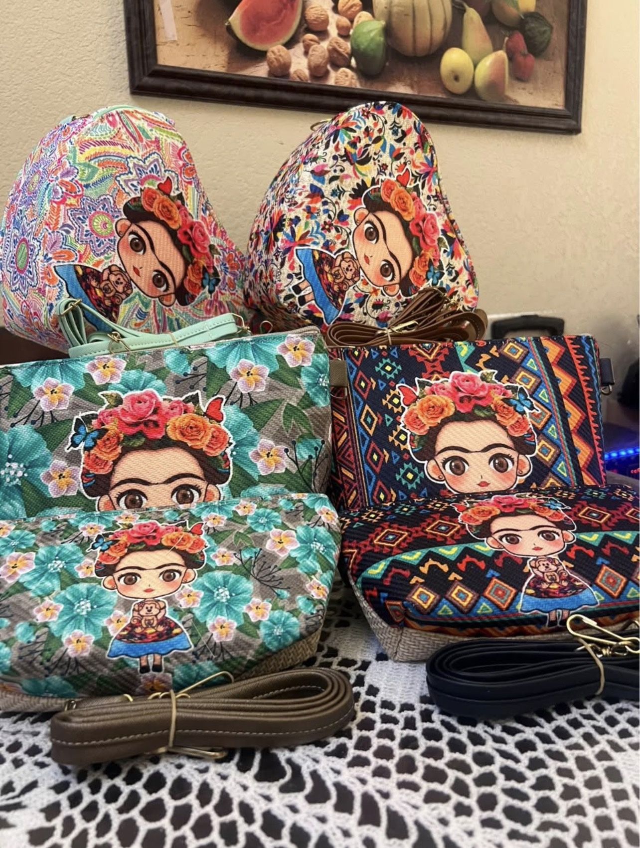 Bolsas de corazón frida kahlo (35$)y bolsas de maquillaje de tamaño mediano (25$) ༄ Todas las bolsas vienen con una correa, las bolsas de maquillaje tienen una bolsa más pequeña en el interior. ༄ Frida Kahlo heart bags (35$)and medium sized makeup bags (25$) ༄ All bags come with a strap, makeup bags have a smaller pouch inside. - Entrega disponible en las ciudades circundantes: Santa Ana, Garden Grove, Tustin, Anahiem, Irvine, Orange, Westminster