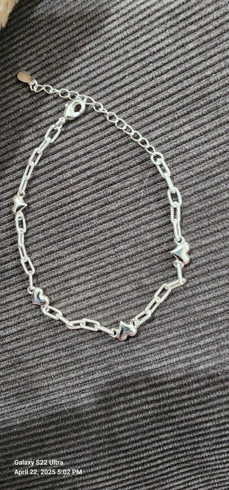 425 Silver Heart Chain Bracelet, Fashionable Elegant Jewelry. Nice girls or Teen bracelet