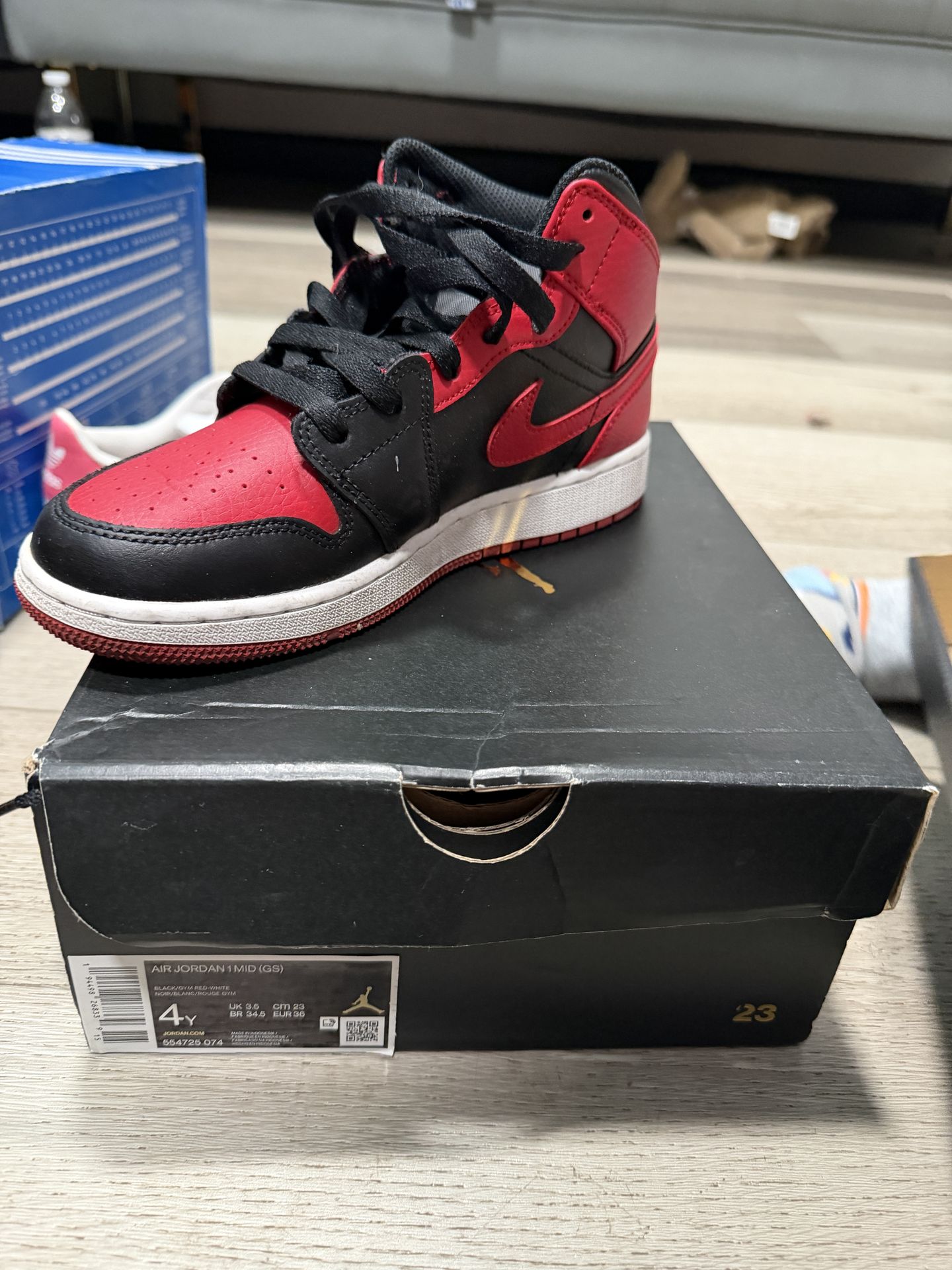 Jordan 1 Mid (Used) Size 4Y Black/Red/White $40