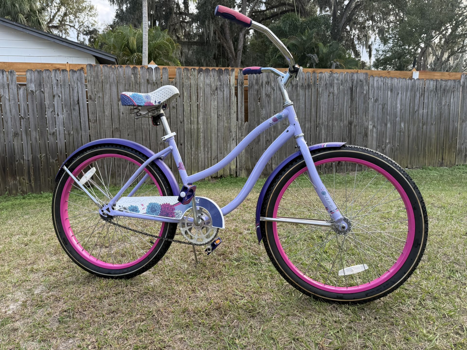 Huffy beach cruiser 24 inch with single speed,steel frame light weight and comfortable seat is ready to ride no issues