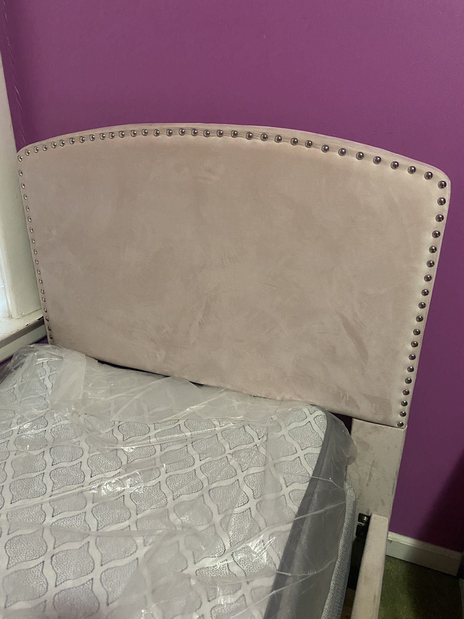 Pink suede, twin sized frame with mattress like new.. two available.. must pick up