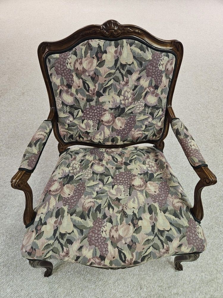 Wood and Floral Accent Chair. Please note it does come from a household with a cat.