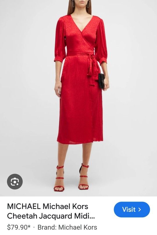 DRESS. Michael Kors Cheetah Jacquard Midi Wrap Dress Red
