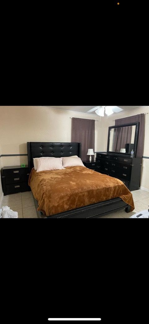Black queen size bedroom all black in good condition. Located on 16st and southern Queen bed 2 nightstands 1 dresser