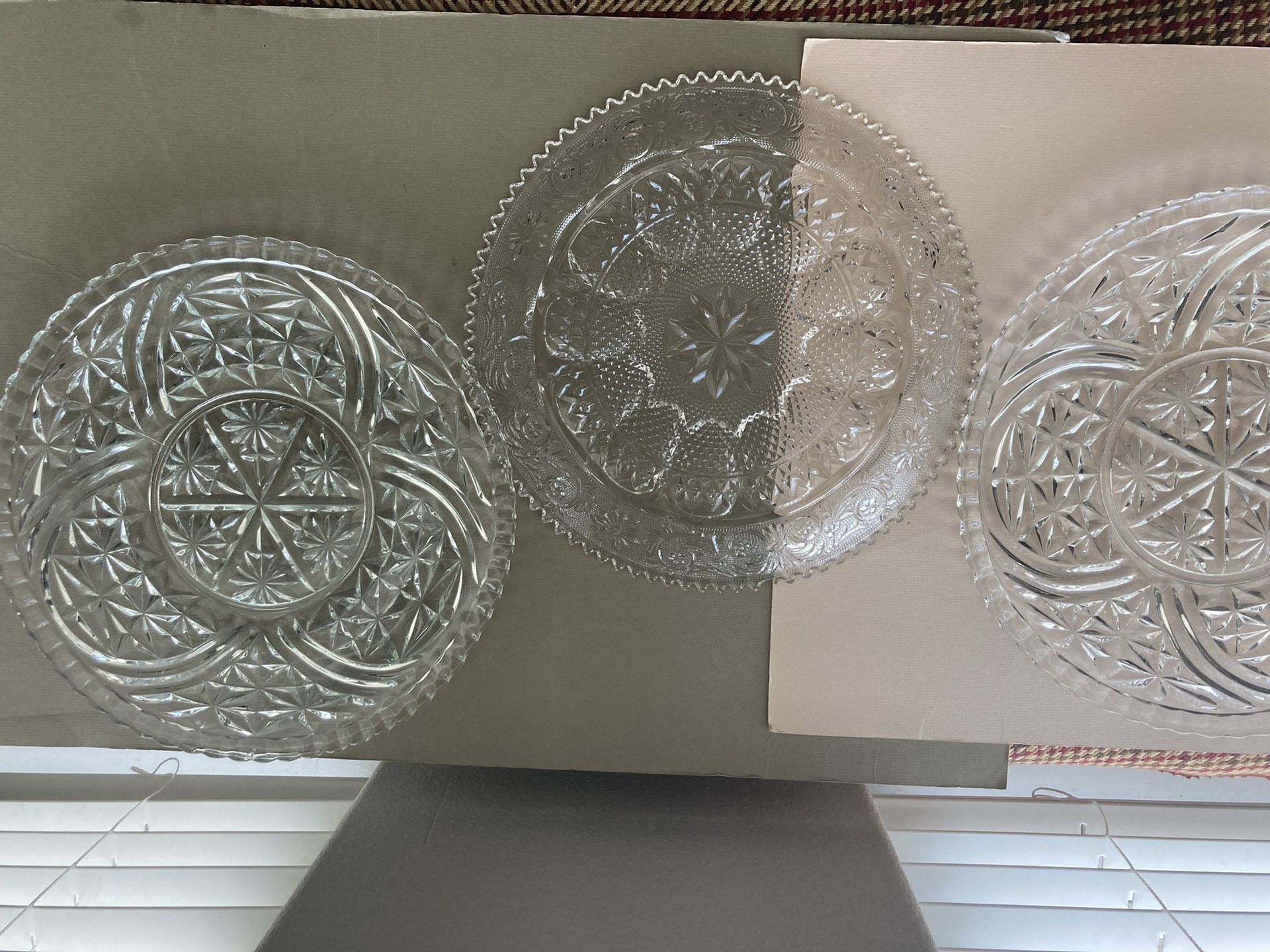 Set of 3 Anchor Hocking Stars and Bars & Duncan Miller Cake Plate Serving Platter Each: $10 & Set of 3: $25