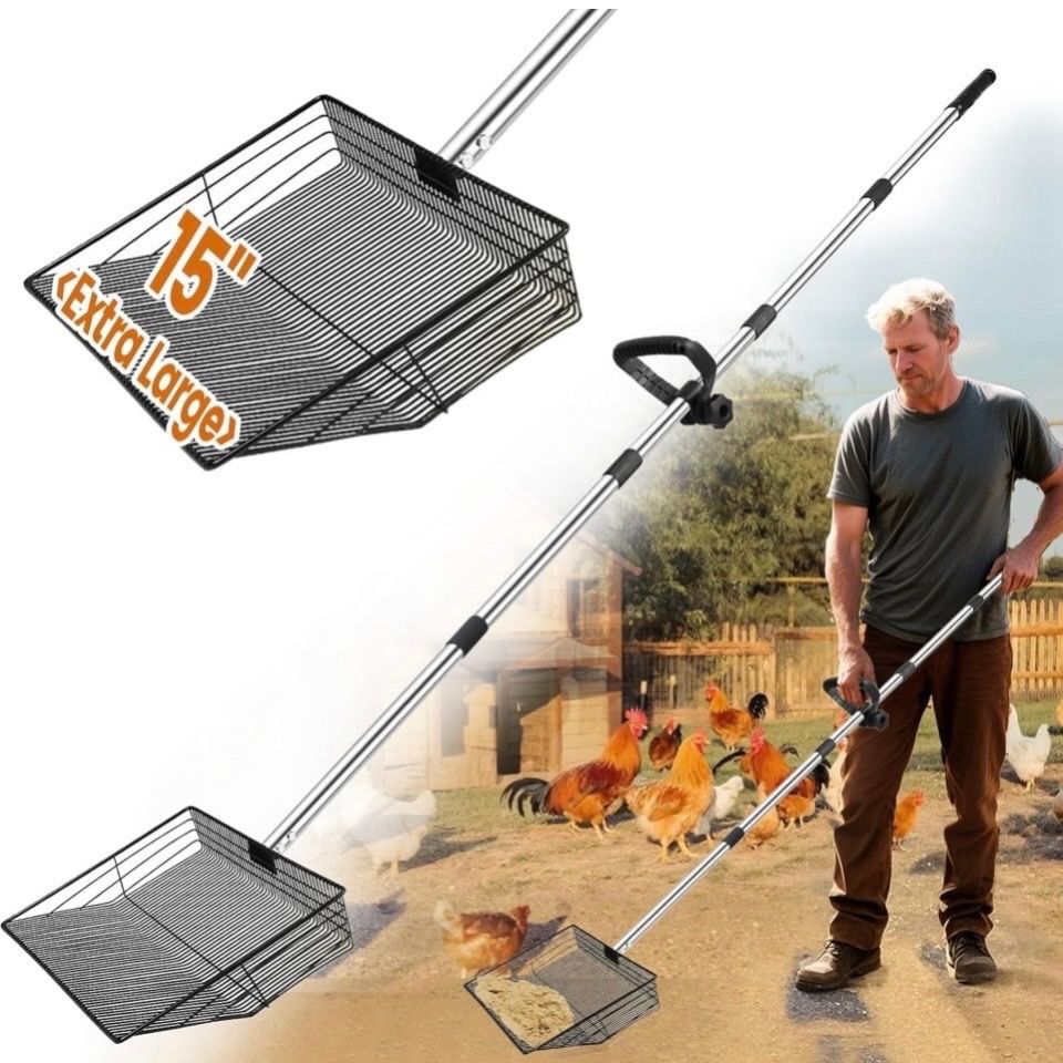 Brand: great dachong 15 inch Chicken Coop Accessories with Ergonomic Grip,5-in-1 Heavy Duty Adjustable Coop Scoop for Poop (24 to 68"), Stainless Steel Sifting Litter Shovel Scoop for Chicken Coop