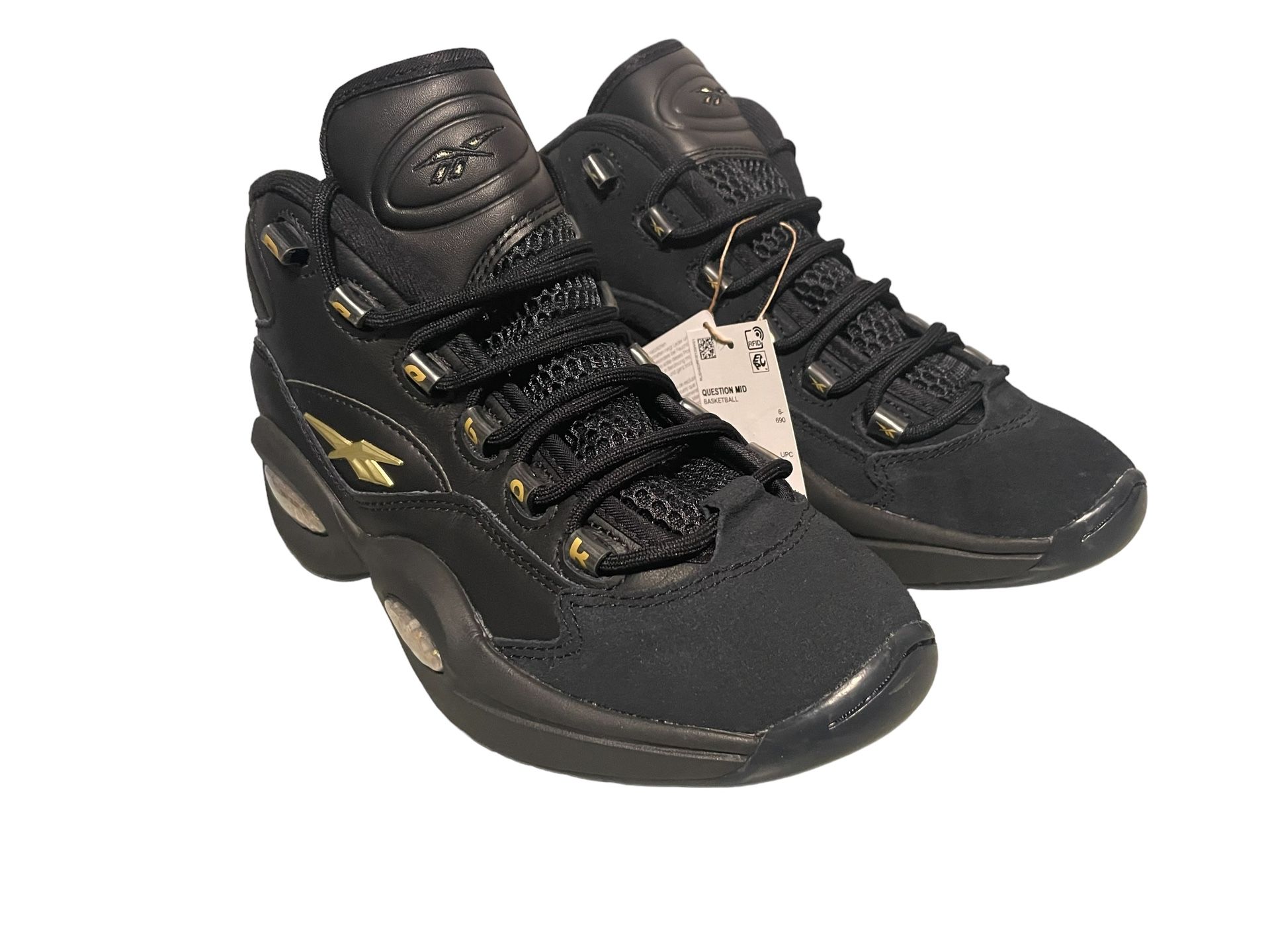 New Reebok Question Mid Lux "Black/Gold Metallic" Grade School Boy’s Shoe