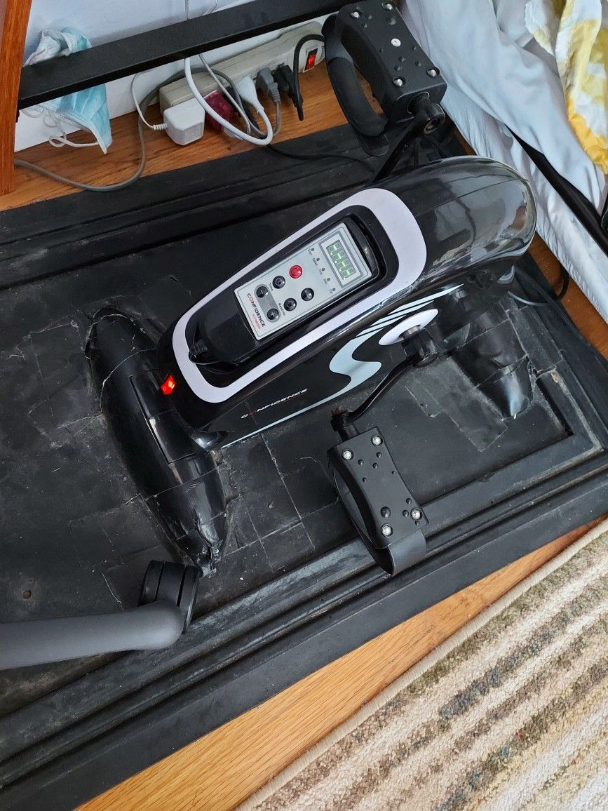 PRICE IS FIRM Confidence Fitness Motorized Electric Mini Exercise Bike/Pedal Exerciser $45 Perfect for working out whilst you work, relax in front of the TV, read or more Can be used to work both legs and arms Motorized pedal action with 12 speed settings for picking the perfect pace to reach your goals 6 built-in Automatic Programmes, 1 Manual Programme, Max speed: 80 RPM Suitable for manual use