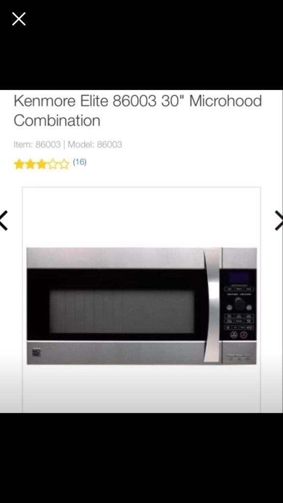 $350 OBO * Large 2.0 cu. ft. oven interior * Even Glide Plus® turn tray * Halogen lights * Sensor cooking * 300 CFM ventilation * Easy Select controls * Auto sensor cooking, reheat and auto defrost Dimensions: Depth: 15.37in. Depth w/ Door Open: 39.2in. Height: 16.438in. Interior Dimensions(HxWxD): 22-7/8in. W x 10-1/4in. H x 14-1/2in. D Width: 30in. •Stainless Steel •Wattage: 1100 •Exhaust Fan Air Flow(CFM): 300 Still in box. Brand new. Never taken out of box. Just opened box to see manual. Brand new was $729.99. Cross posted Comes from a smoke free home. Can meet at Starbucks in Concord at Route 44/I90 or Chardon Police Department or Geauga County Sheriff Dept. Cash only