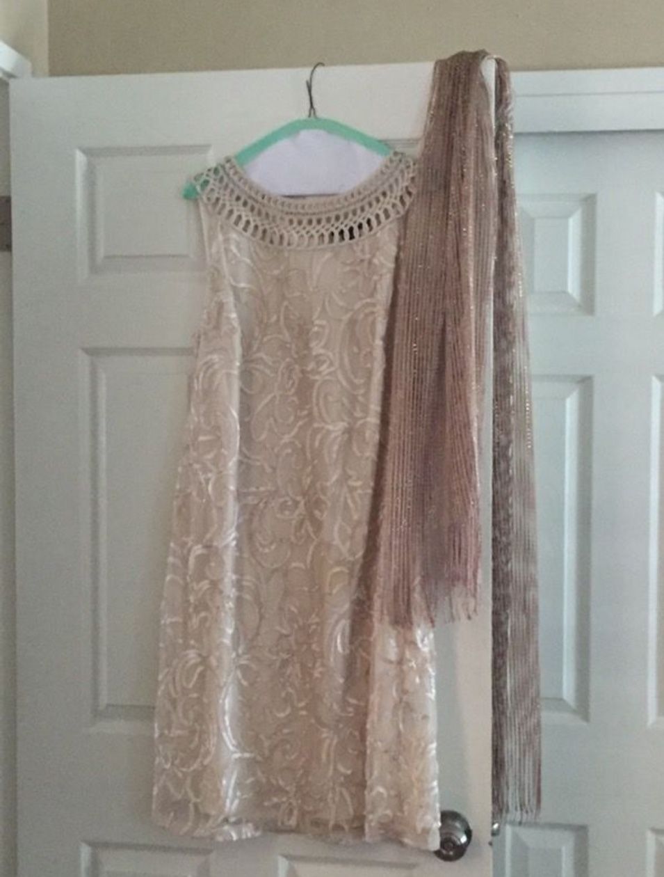Formal Dress - great for Holiday Parties, Mother of the Bride, formal event, wedding guest Jessica Howard dress - Size 16 knee length Matching shawl (included w/ dress) Alex Marie shoes size 8.5 - $15 Dress and shoes worn once Price for dress & shoes $70
