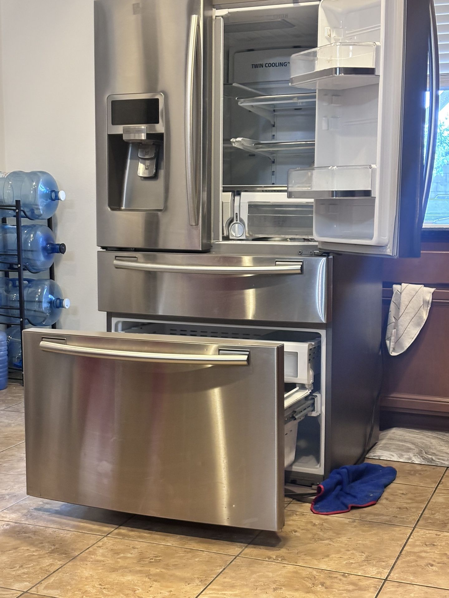 Handles are inside fridge works fine but leaks water from under the fridge (ice and water maker still work)