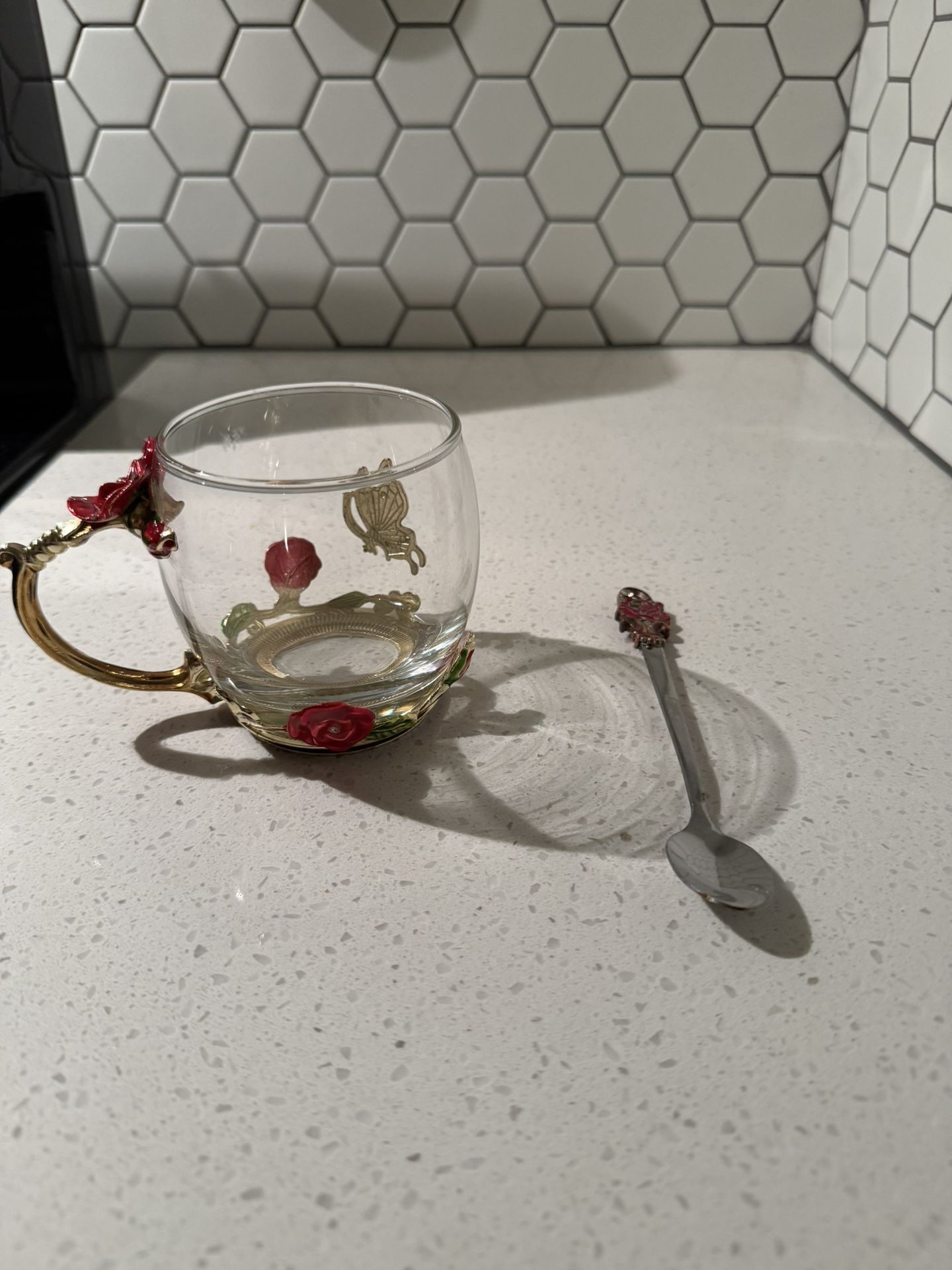 Rose tea cup and spoon