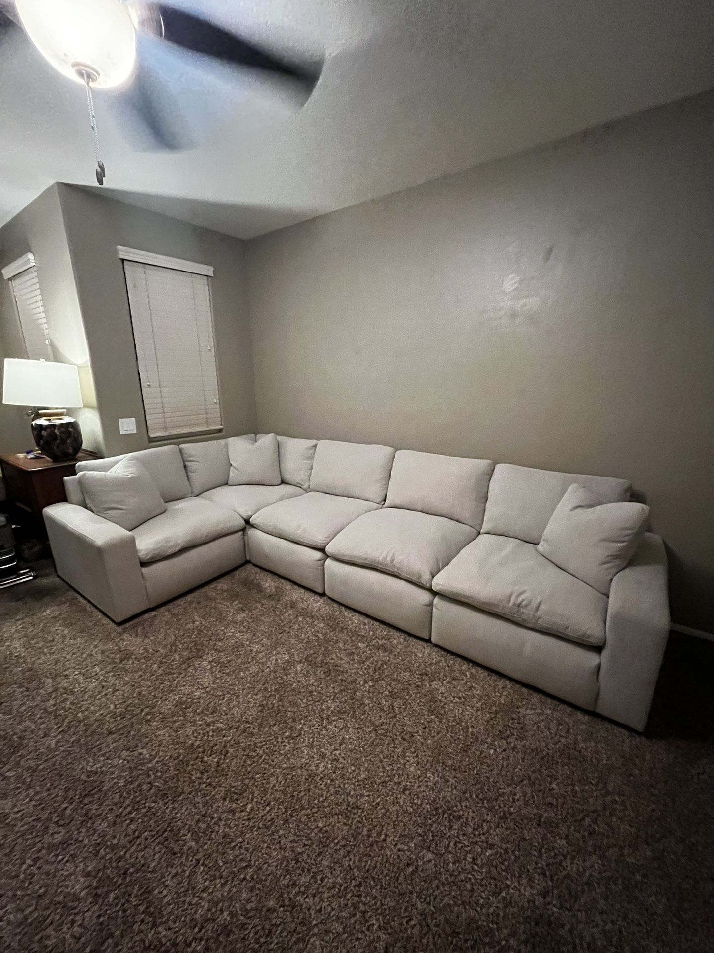 Pickup only. Only had for about 6 months but we are moving and we need a different size. Cushions can removed and pieces can be configured. Firm.