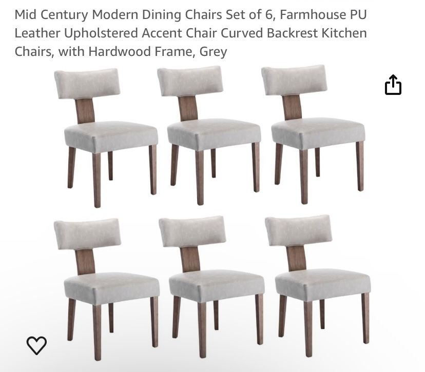 Mid Century Modern Dining Chairs Set of 6, Farmhouse PU Leather Upholstered Accent Chair Curved Backrest Kitchen Chairs, with Hardwood Frame. I bought them for my new home. Open box, barely used. Thank you.