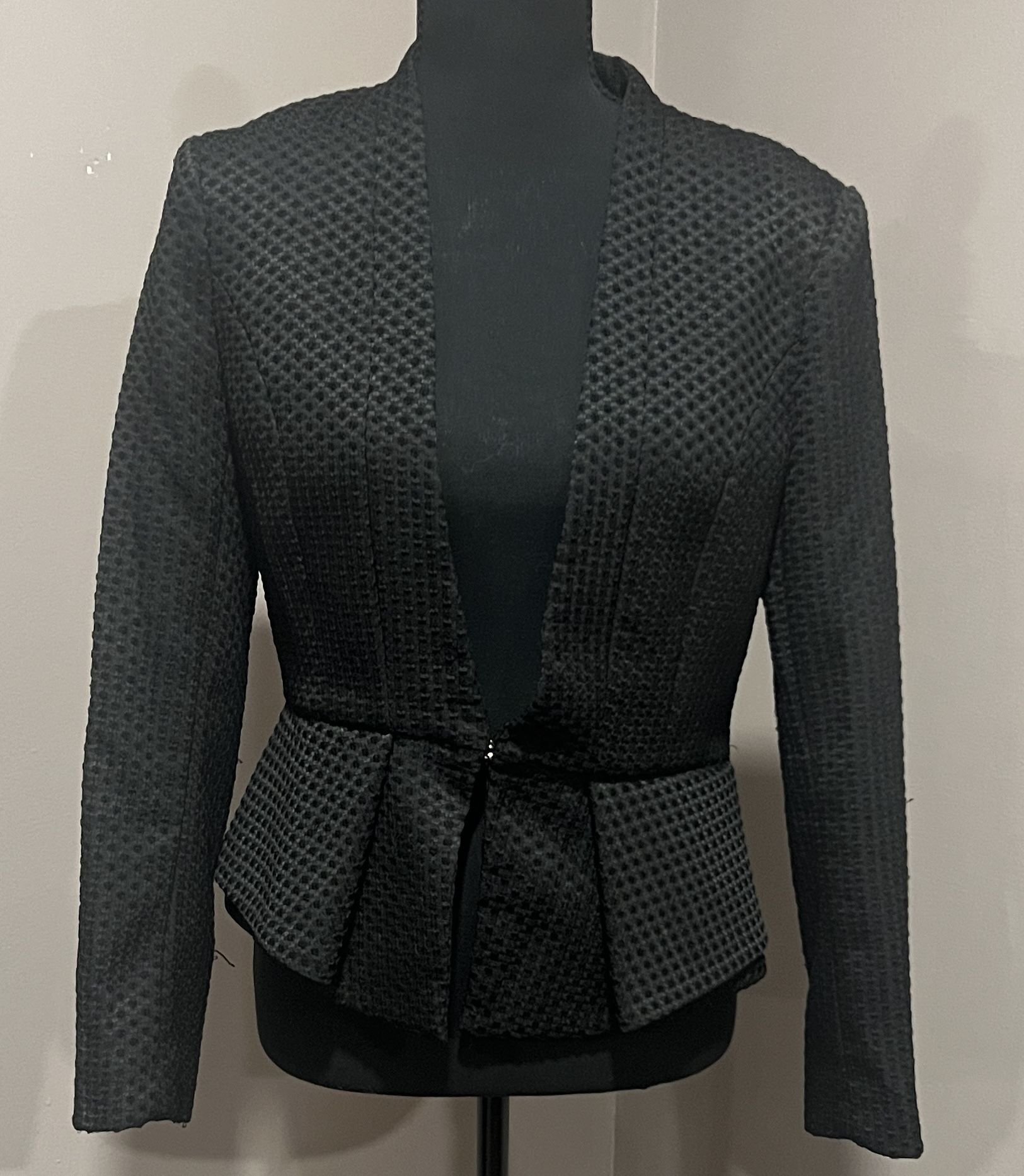 Chic black blazer with textured design. Perfect for formal or casual wear. Adds sophistication to any outfit. Size 8 $20 obo