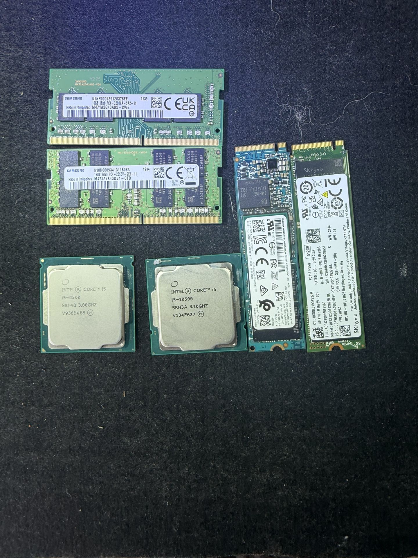 2NVME 512 GB SSD‘s one Intel core I5 9500 3.00 GHz one intel core i5 10,500 3.1 GHz 216 GB of DDR 4/DDR 5 ram