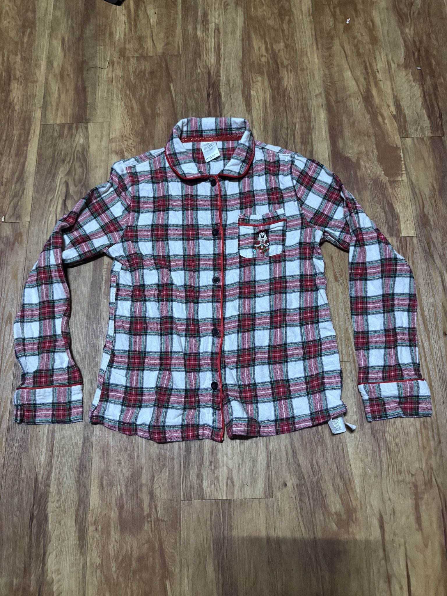 Disney Store Christmas Minnie Mouse Pajama Shirt Red Plaid Flannel Size Small Long Sleeve Flannel Plaid shirt Preowned Good condition Smoke free Pet free
