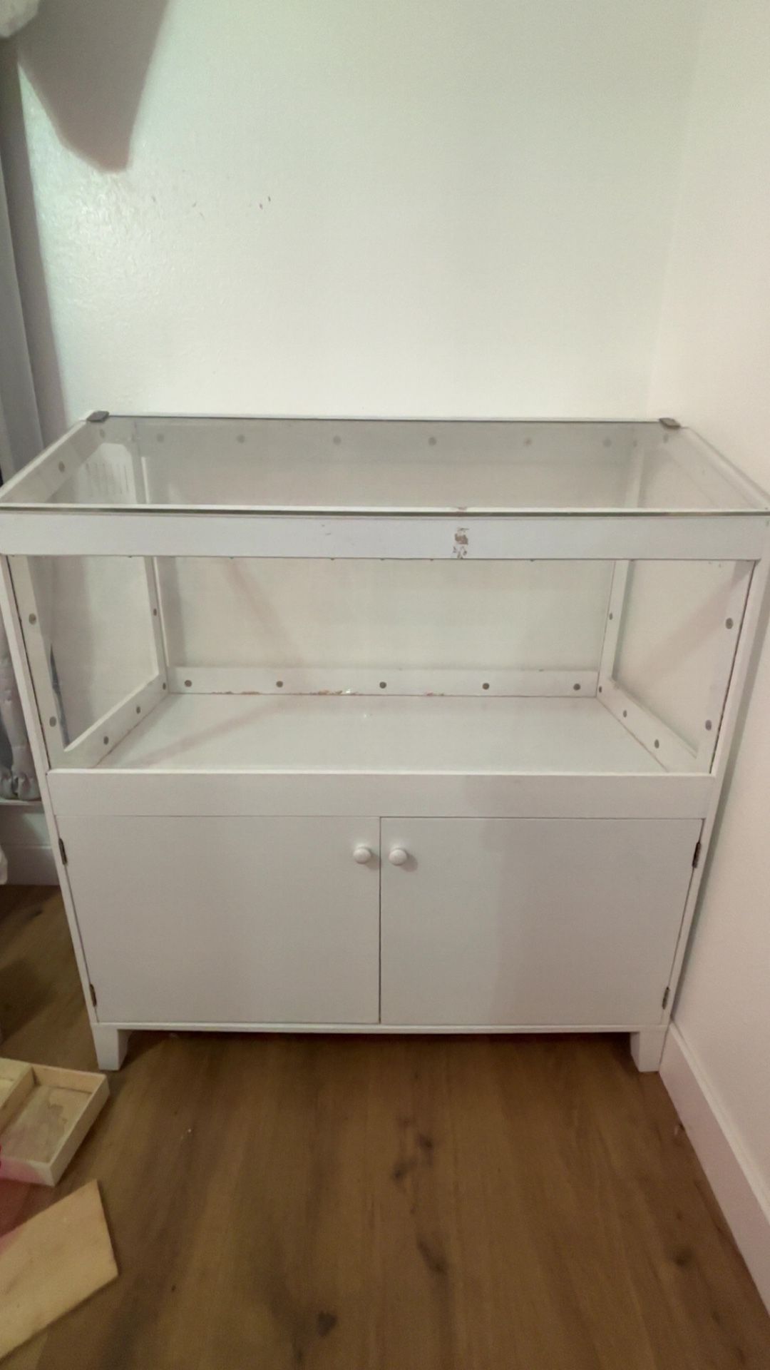 Hamster Cage with Storage Cabinet – Acrylic Panels for 360° Viewing, Ideal for Hamsters, Rabbits, Guinea Pigs, and Hedgehogs, White. Comes with extra supplies and accessories.