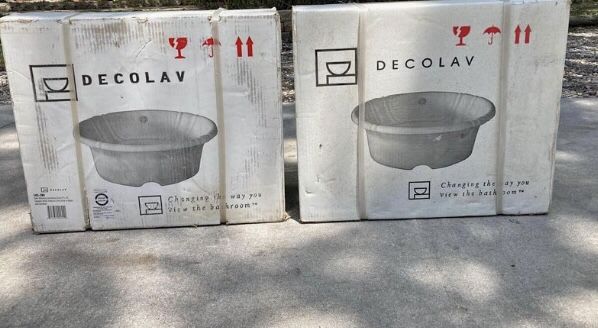 (2) Decolav Self Rimming Oval White Ceramic Basin Sink with Overflow 19’X16’ It has a drain hole. It does not have any holes for faucets cause it’s a drop in sink