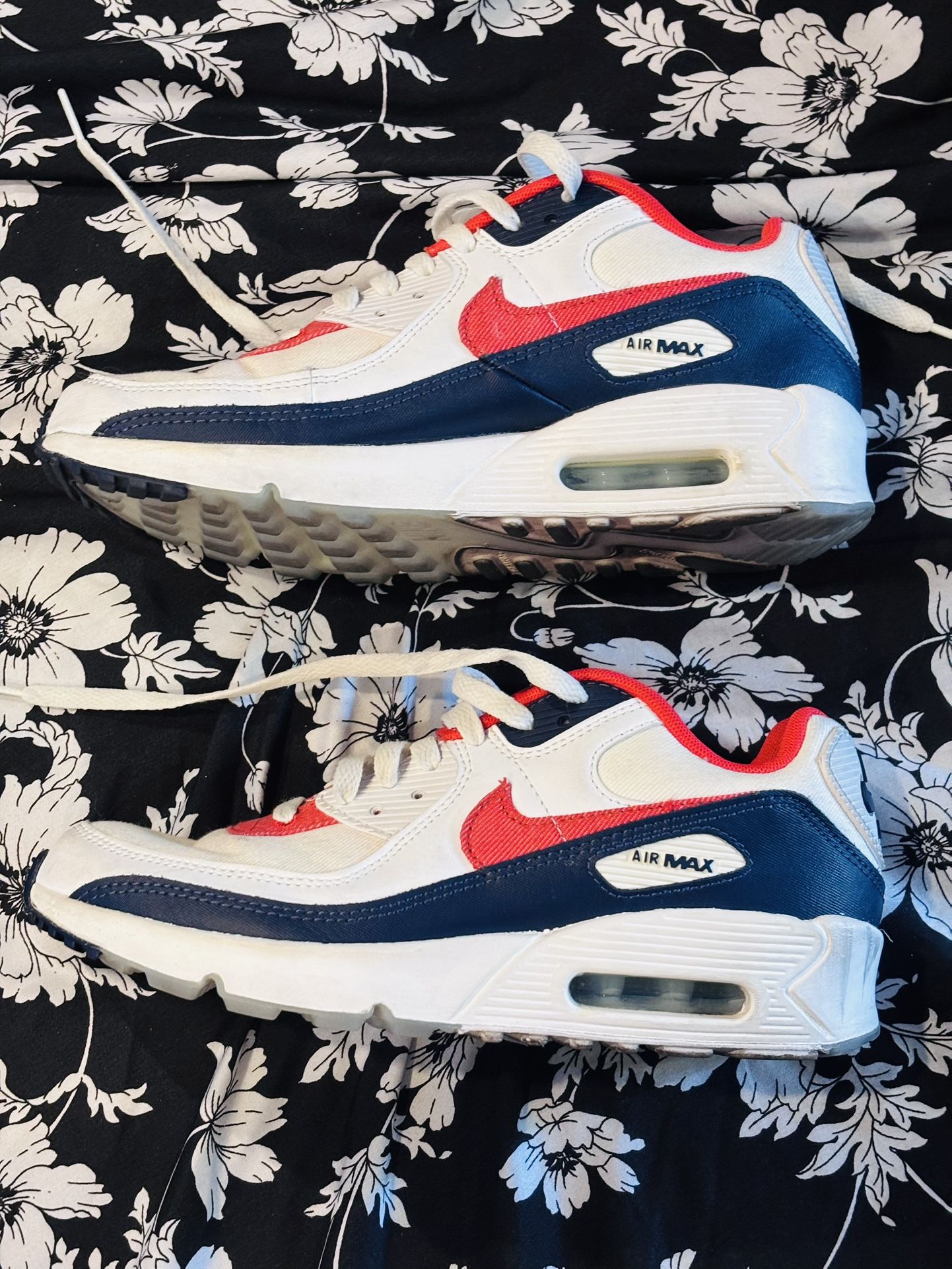 Lightly worn . Denim red, white & blue Air Maxs’ . Size 6Y or Women’s size 8
