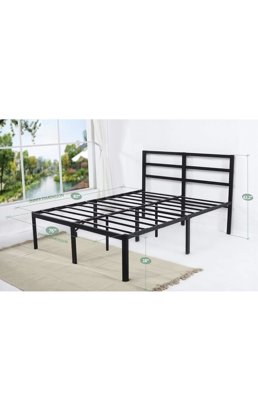 Deluxe Metal Slat Bed Frame ONLY - Queen Size - Black - Unable to ship
