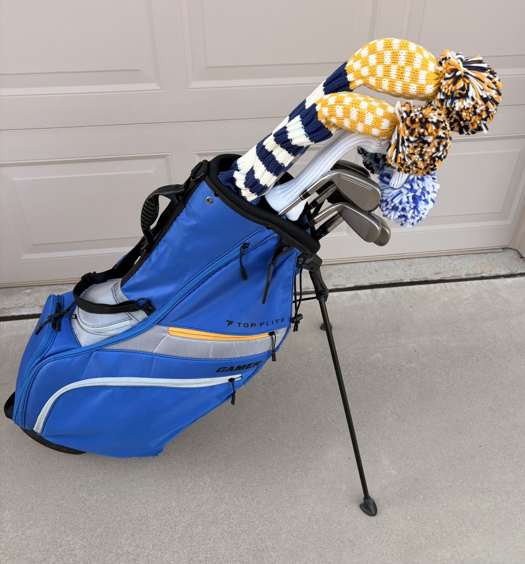 Taylormade Golf Set What’s included: TaylorMade Burner driver 10.5° TaylorMade 2 Hybrid 16° Ping G20 5 wood 18° Carlsbad Golf 20* hybrid TaylorMade Burner 4 Iron TaylorMade R7 irons 6-PW,SW Odyssey Dual Force Rosie ll Putter Top Flite Gamer Carry Bag with Cooler Pocket Callaway Mizuno Nike Wilson Titleist Ping Adams PXG Scotty Cameron Odyssey Cleveland Cobra Driver Wood Hybrid Putter Wedge Taylormade sun mountain clicgear cube bag boy