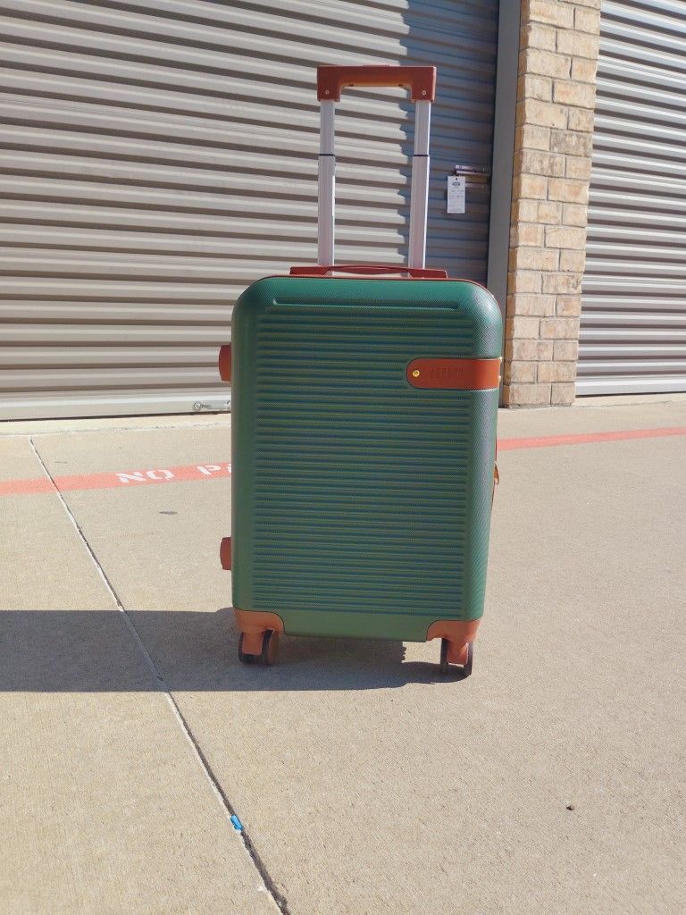 PORCH PICKUP IN CARROLLTON and PRICE IS FIRM... Like new in great condition The Benoss Milan 20 Inch Hardside Spinner Carry-On is a high-quality carry-on luggage option from Wanderlust Brands. This solid green suitcase features a hardcase design, making it durable for travel. It also includes convenient spinner wheels for easy transportation and is made of lightweight polycarbonate material. Suitable for both men and women, this carry-on is perfect for short trips and as a convenient mode of transportation for business or leisure travel